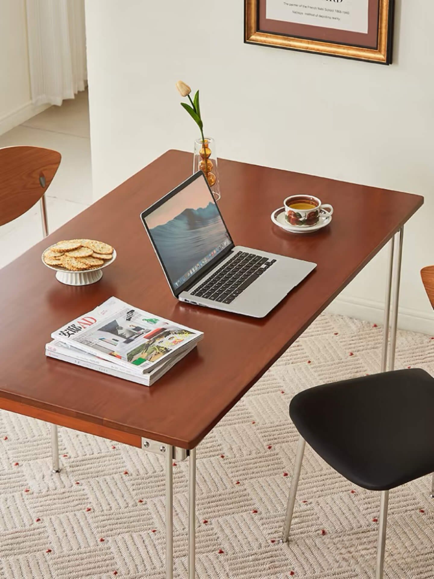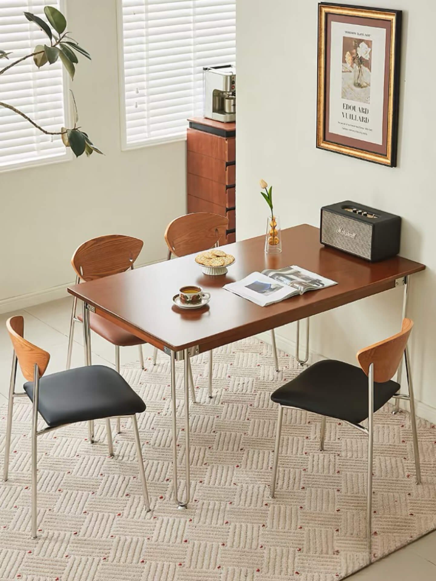 In the fast-paced modern world, creating a warm and multifunctional space at home becomes essential. Today, I’m excited to introduce you to the Mid-Century Modern Dining Table and Chairs – your perfect companion for meals, work, and family bonding.