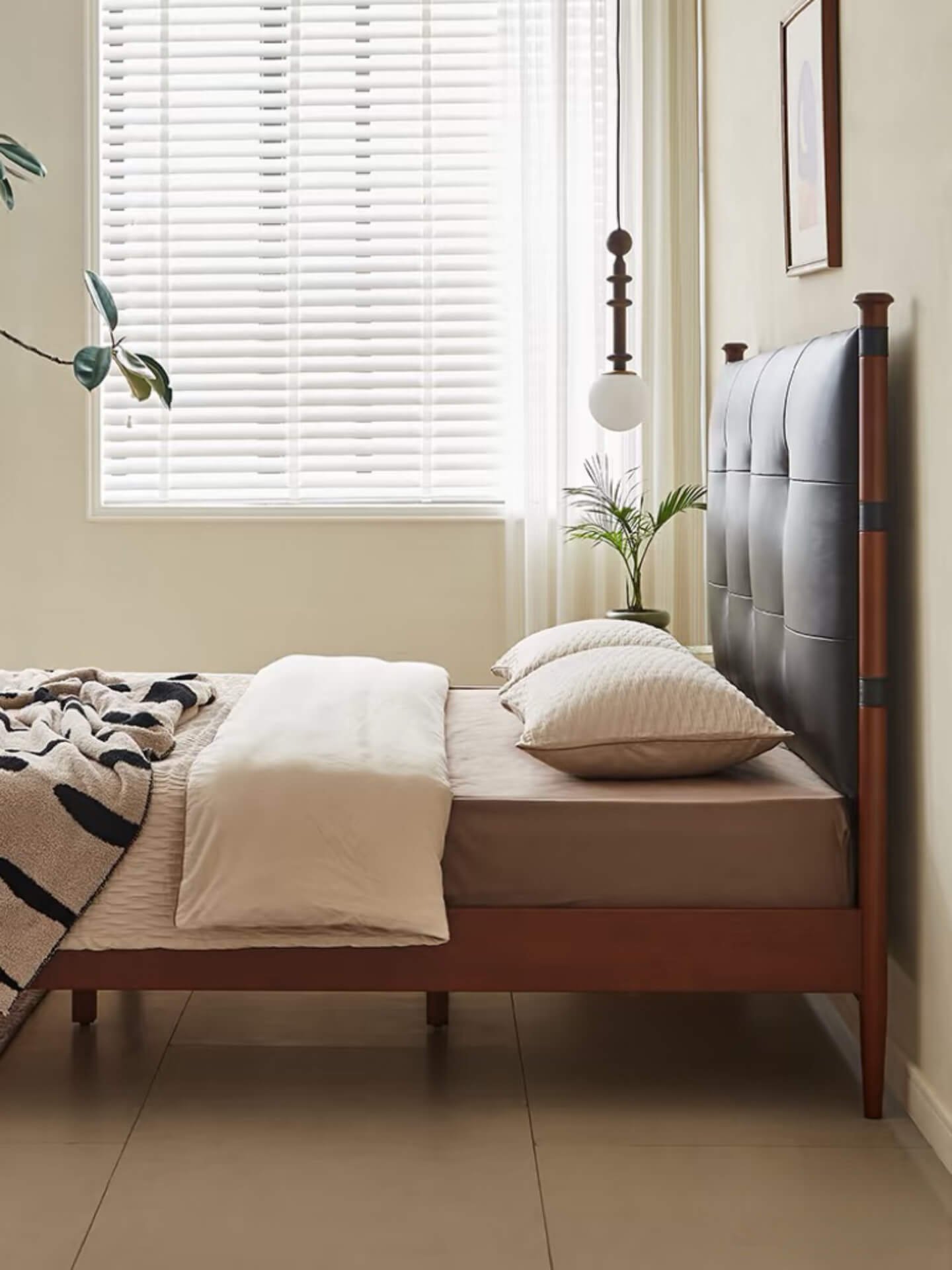 The matte oil-waxed leather used for the bed has a natural, mottled grain that creates a dreamy filter effect. It’s comfortable to the touch and visually soothing, allowing your mind to wander free from daily worries.