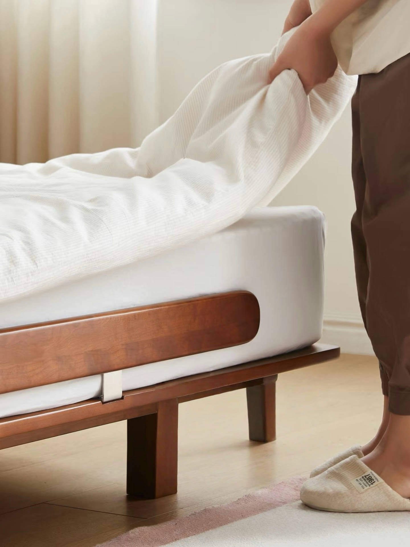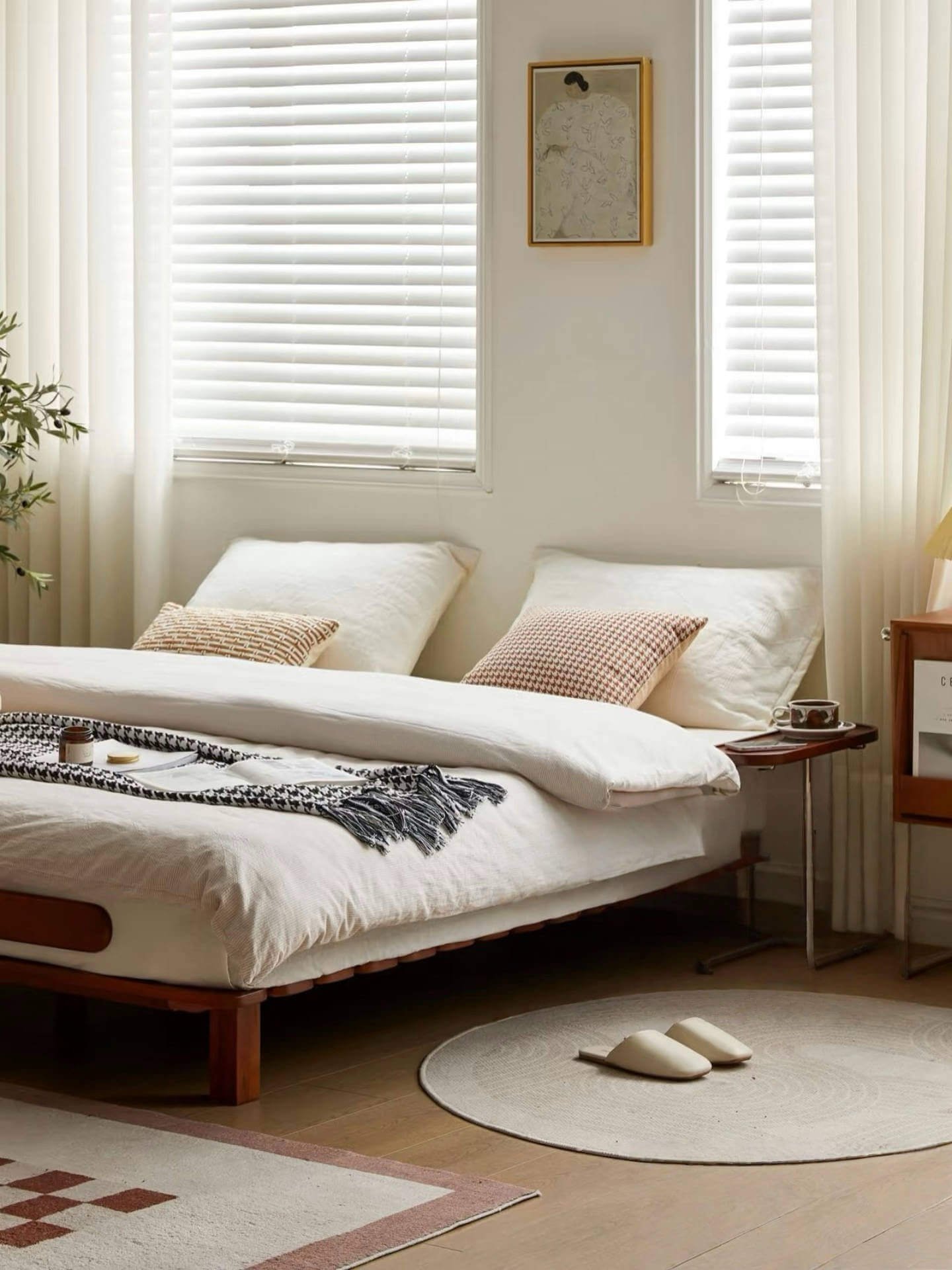 Smart small – space living starts with a bed that elevates both aesthetics and functionality. The headboard – free cherry solid wood floating bed brings simplicity and practicality, transforming compact spaces.