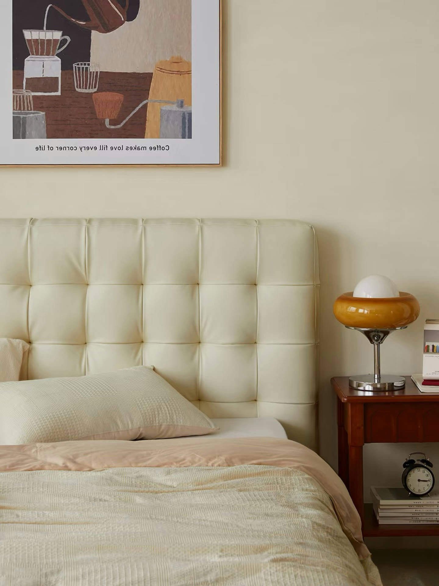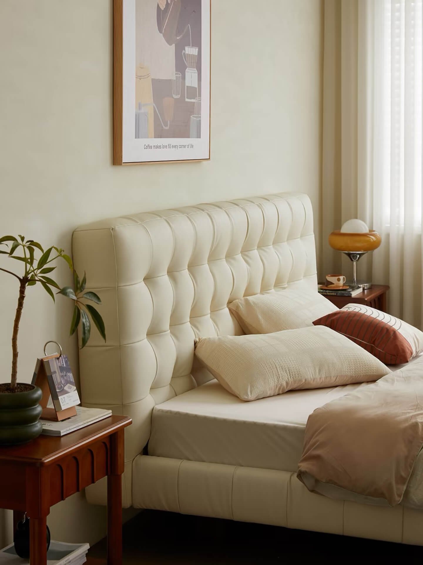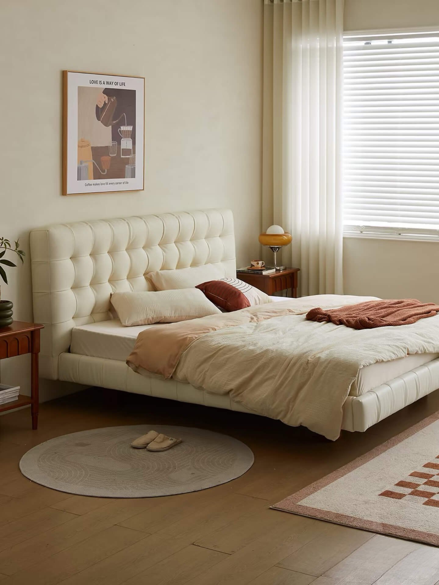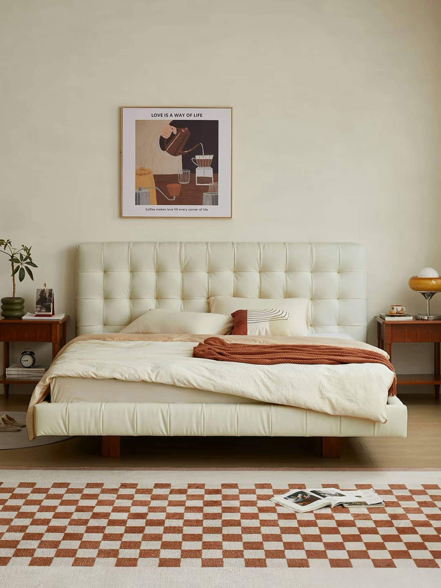 If you’re craving a cotton candy-like bed, try this white leather one. It offers visual delight and unparalleled comfort. It will surely surprise you, letting you indulge in a wonderful sleep journey daily and wake up refreshed!