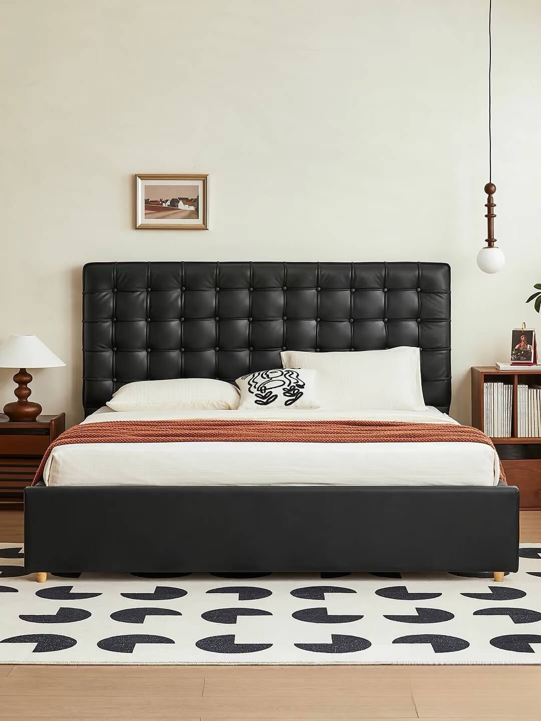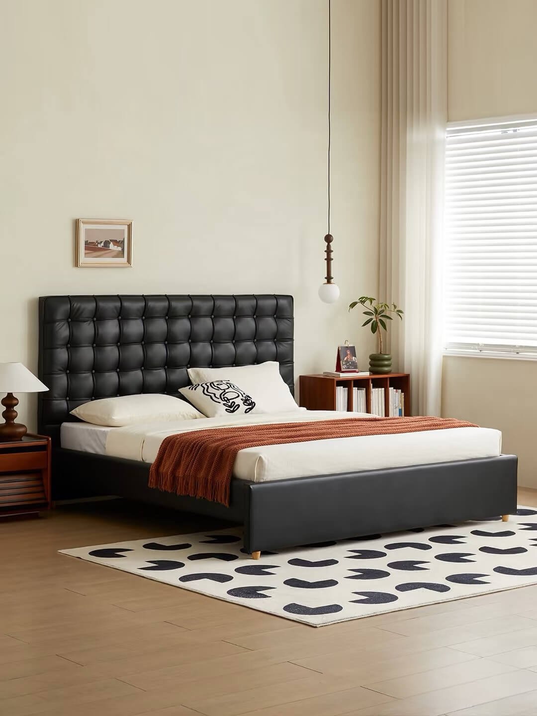 The charm of a bedroom lies in its details. This black leather bed isn’t just functional—it’s the key to elevating your space. Pair it with soft bedding, warm lighting, and minimalist decor, and watch your bedroom transform into a haven of style. Whether your taste leans toward modern minimalism, Nordic simplicity, or luxury elegance, this bed effortlessly complements your vision.