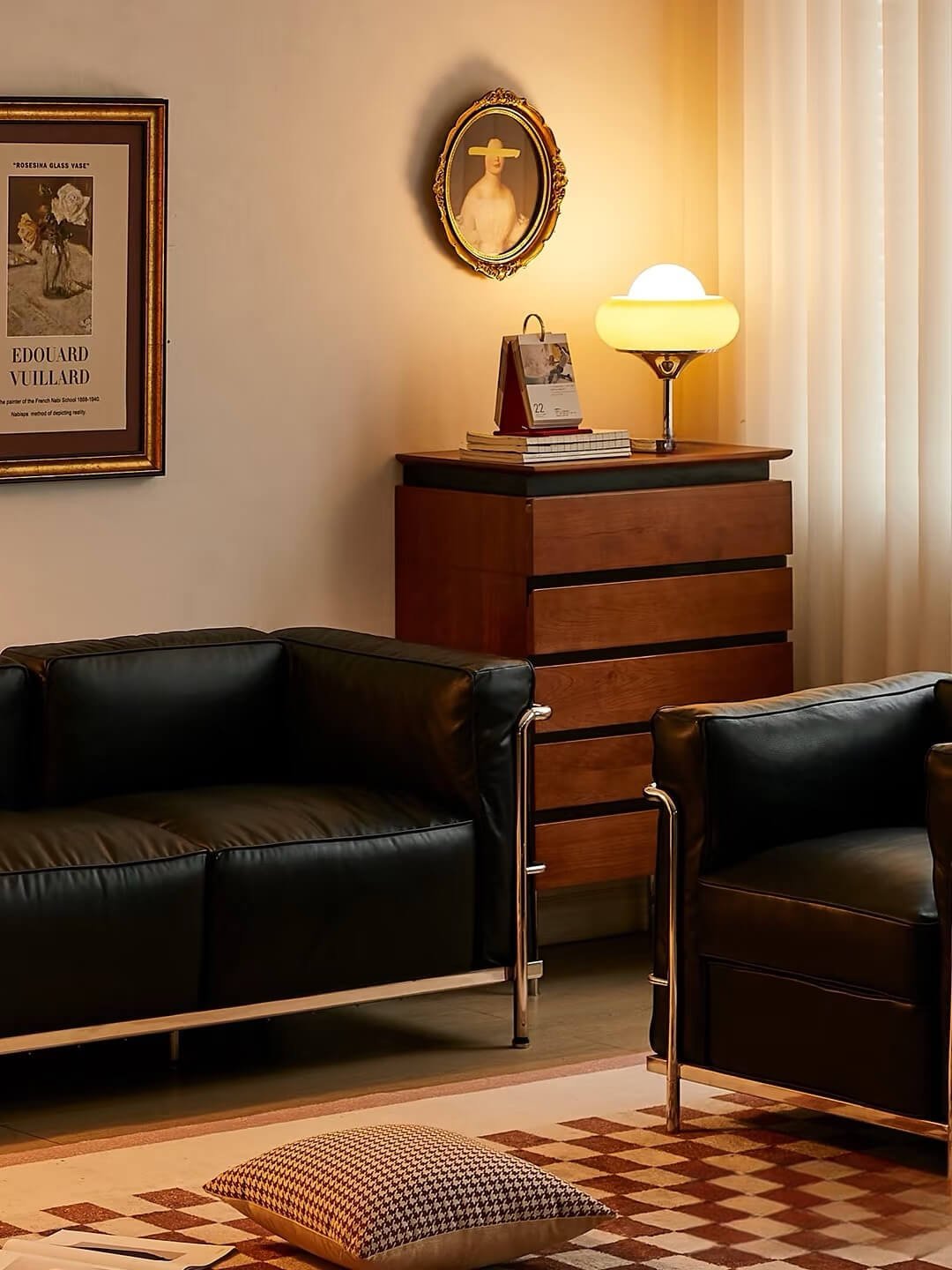 The LC3’s bold geometric form, with its polished chrome frame and clean lines, embodies the Bauhaus spirit. The contrast between the rigid metal structure and the soft, padded cushions creates a striking visual harmony that transcends trends.