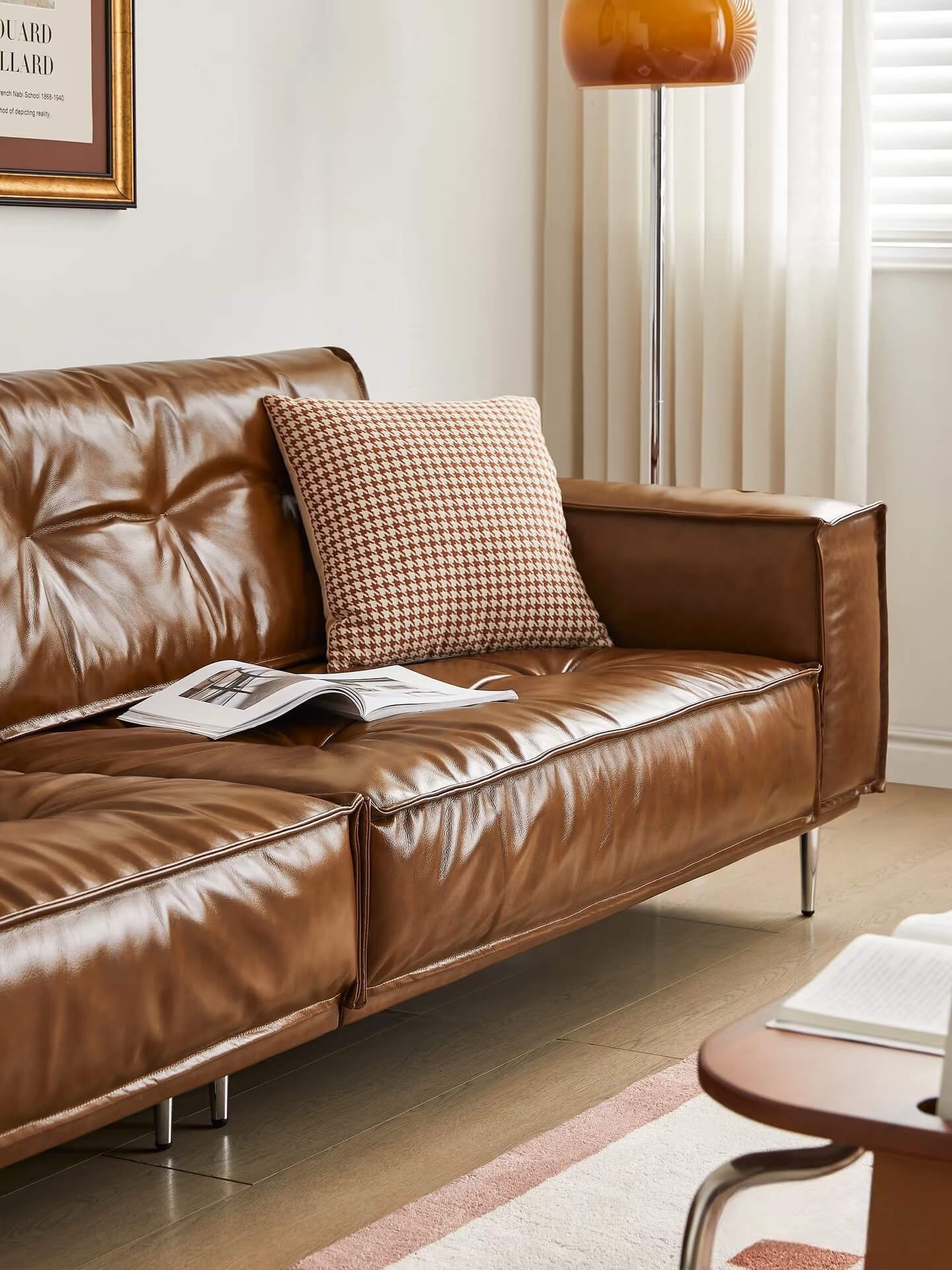 When vintage charm meets modern elegance, and minimalist luxury intersects with practicality, a sofa becomes more than just furniture—it becomes the soul of your space. The JUBAN Sofa, with its tall metal legs and brown oil-waxed leather upholstery, embodies timeless sophistication, effortlessly complementing a variety of interior styles from retro and modern to minimalist luxury. Whether you’re furnishing your home for the first time or upgrading your living space, this sofa is a foolproof choice.