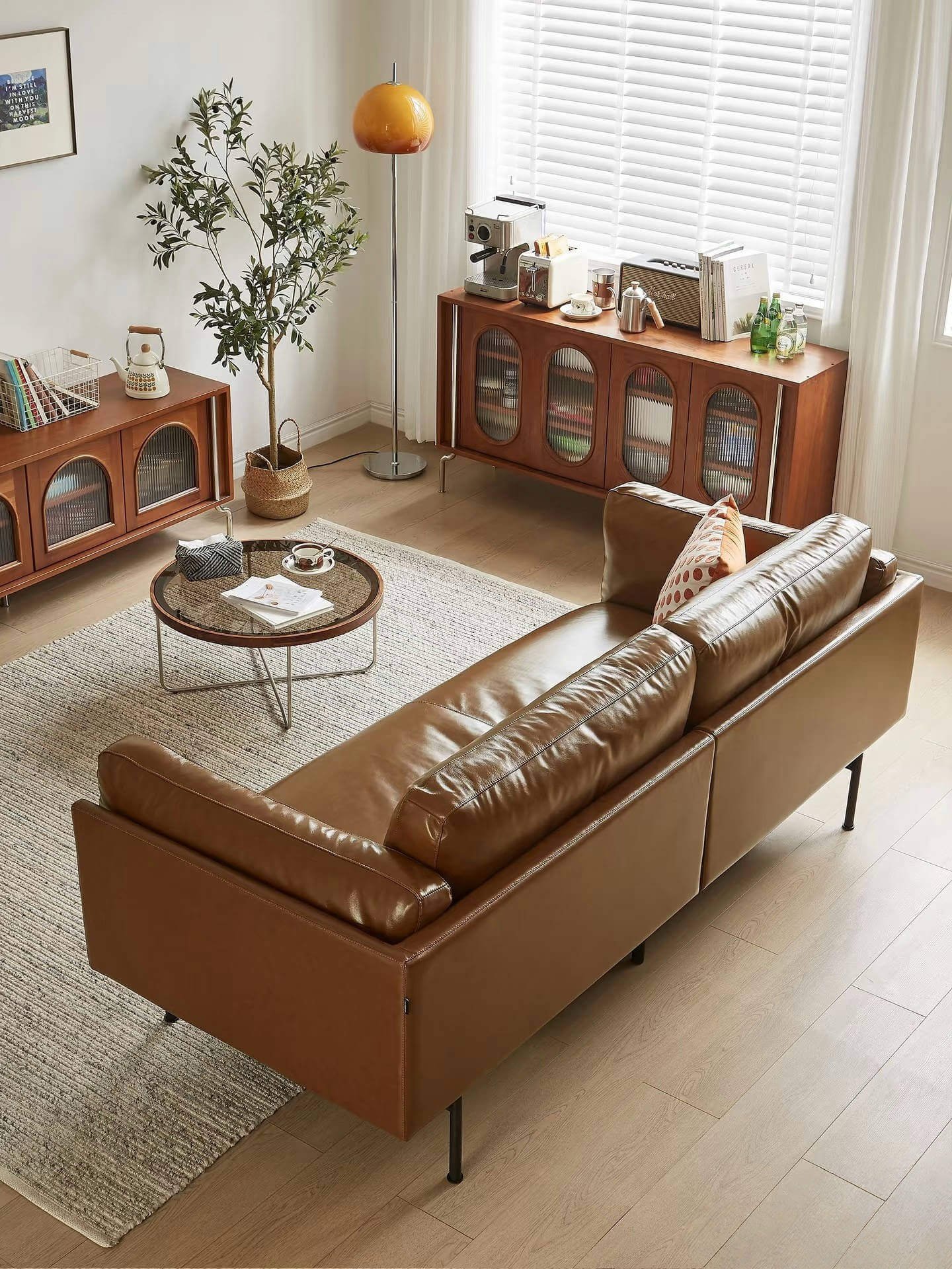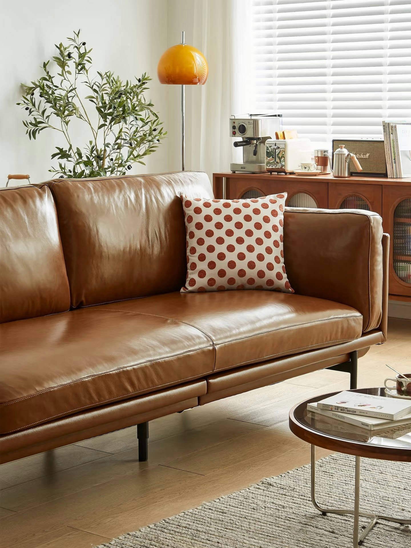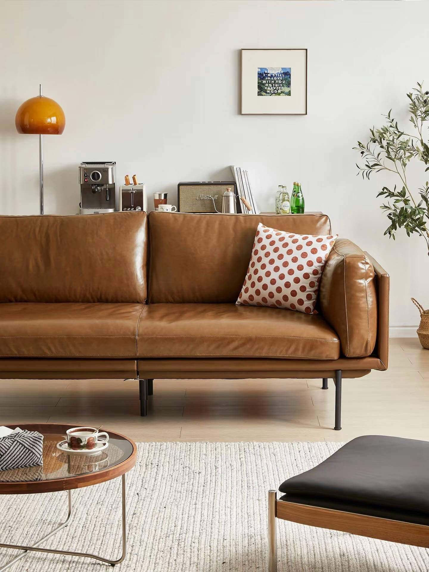 Designed with carbon steel legs, the sofa stands 24cm off the ground—just right for easy access for robotic vacuum cleaners. The leather’s water-repellent coating acts like an invisible raincoat, so accidental juice or coffee spills are easily wiped away with a tissue, leaving your sofa looking brand-new.