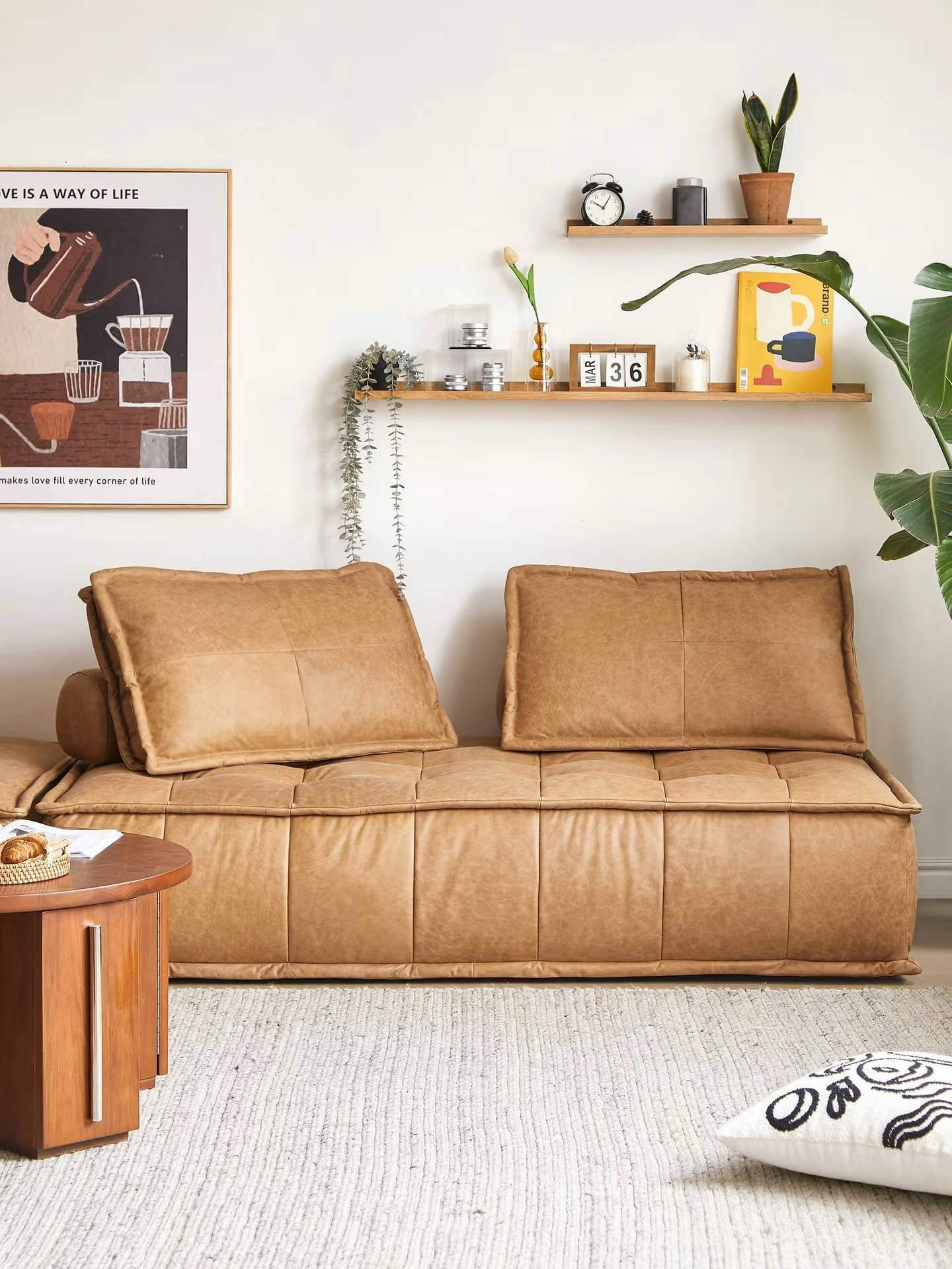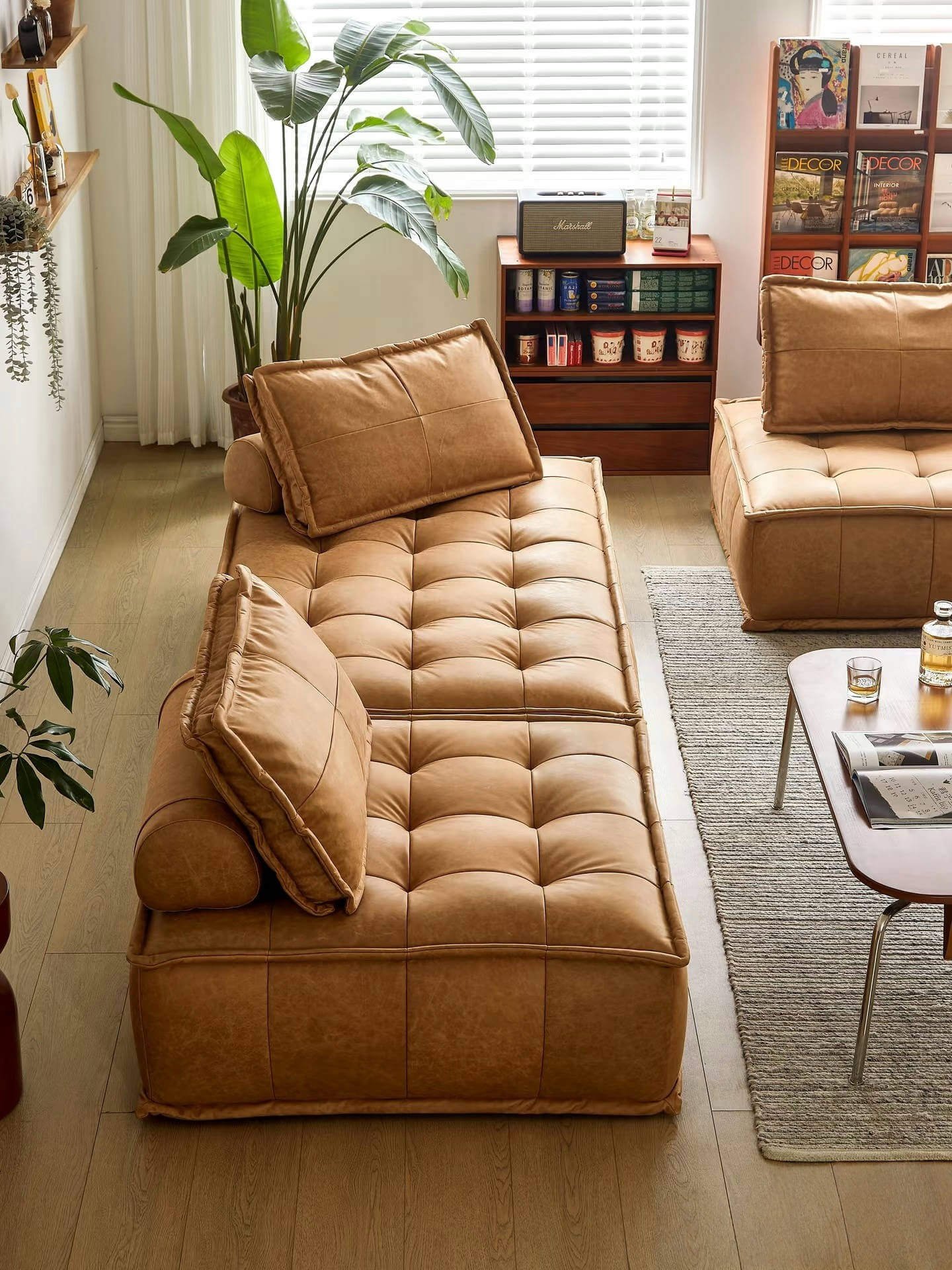 The Piemonte Sofa immediately catches the eye with its premium vintage waxed leather upholstery. The leather is soft, supple, and features natural textures with hand-applied aging effects, creating a nostalgic yet sophisticated atmosphere. This material not only feels warm to the touch but also develops a unique patina over time, becoming more beautiful and character-rich with use.