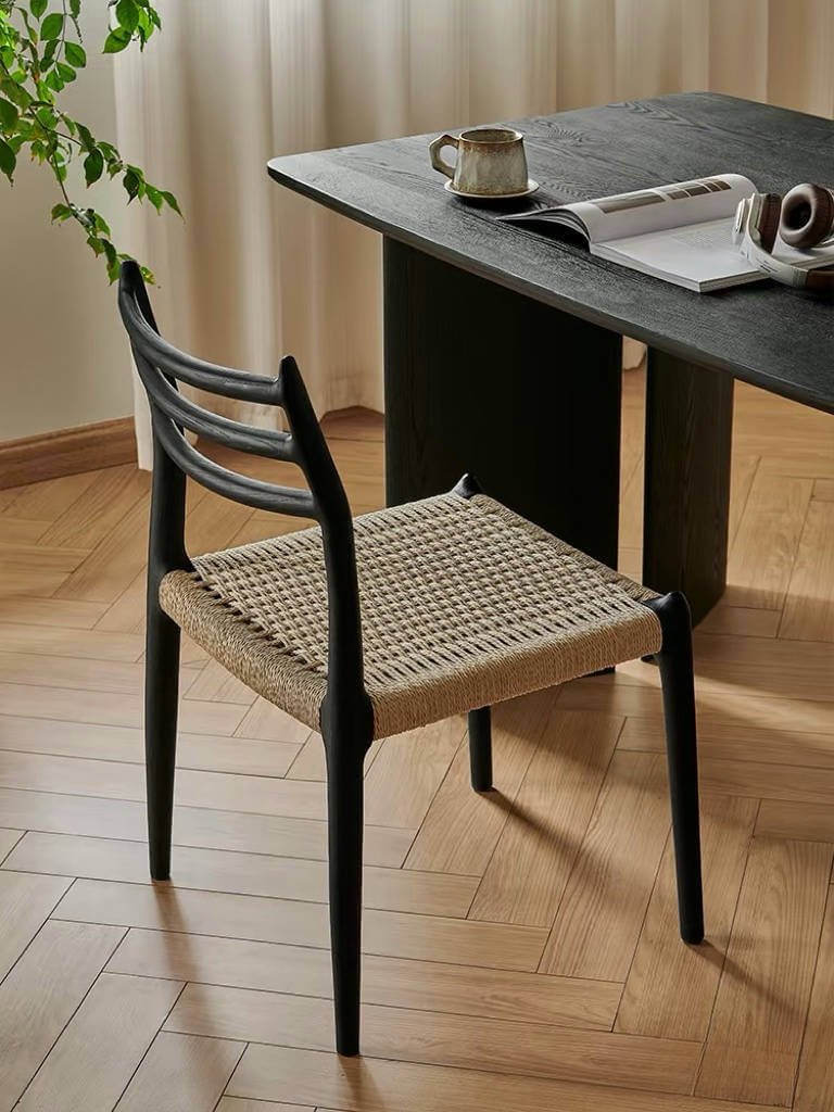 In fast-paced modern life, minimalism is like a refreshing stream, bringing peace and order to our minds and living spaces. A well-designed rattan chair is the perfect key to unlock minimalist living, especially for those who love black. This rattan chair is crafted from carefully selected North American FAS-grade carbonized ash wood. The ash wood is hard and has fine texture. After carbonization, its stability, durability, and unique texture and color are enhanced. The widened arc-shaped backrest is like a gentle arm, offering full support and comfort. When you sit down, it’s as if you’re sitting on a cloud, allowing you to enjoy a leisurely time.