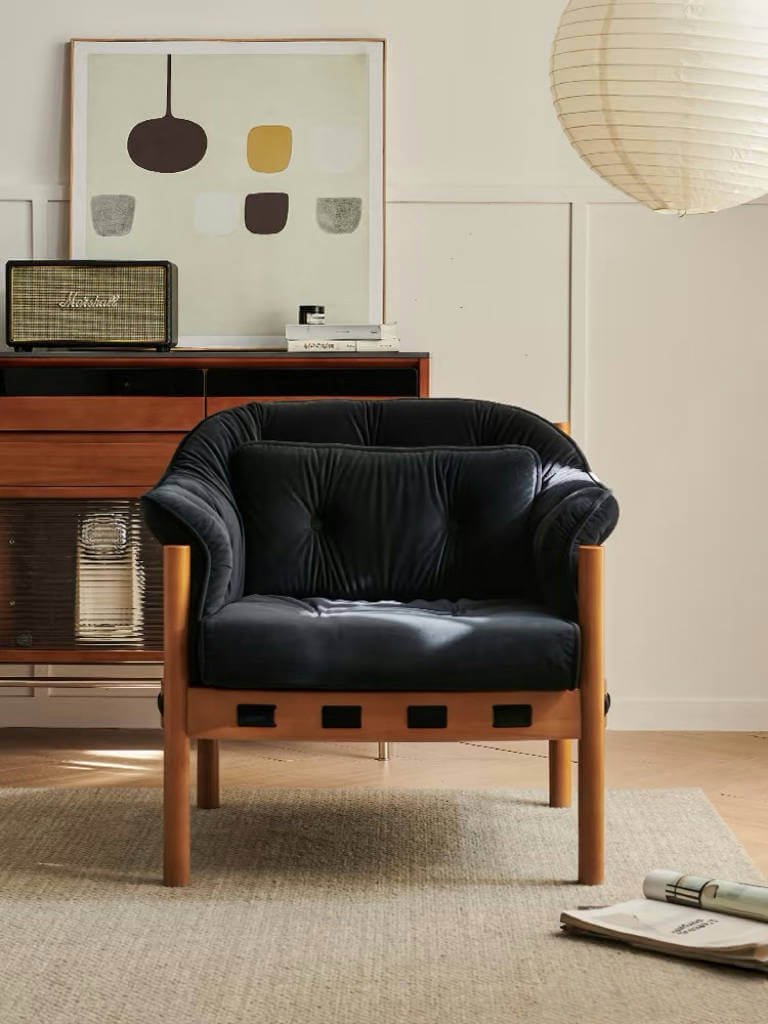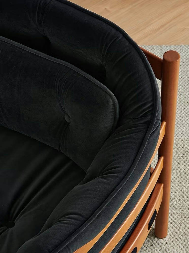 Crafted with velvet fabric, it boasts a lustrous sheen and is also skin-friendly and breathable. Under the play of light and shadow, the sofa presents a low-key yet luxurious visual effect, while bringing a silk-like smooth touch