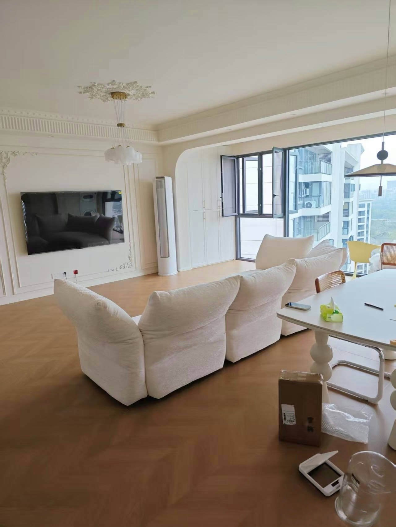 Ladies! If your living room is spacious and well – lit, consider trying out light – colored sofas! The combination of floor – to – ceiling windows, wooden tiles, and cream – colored walls in my home has been the talk of the town!