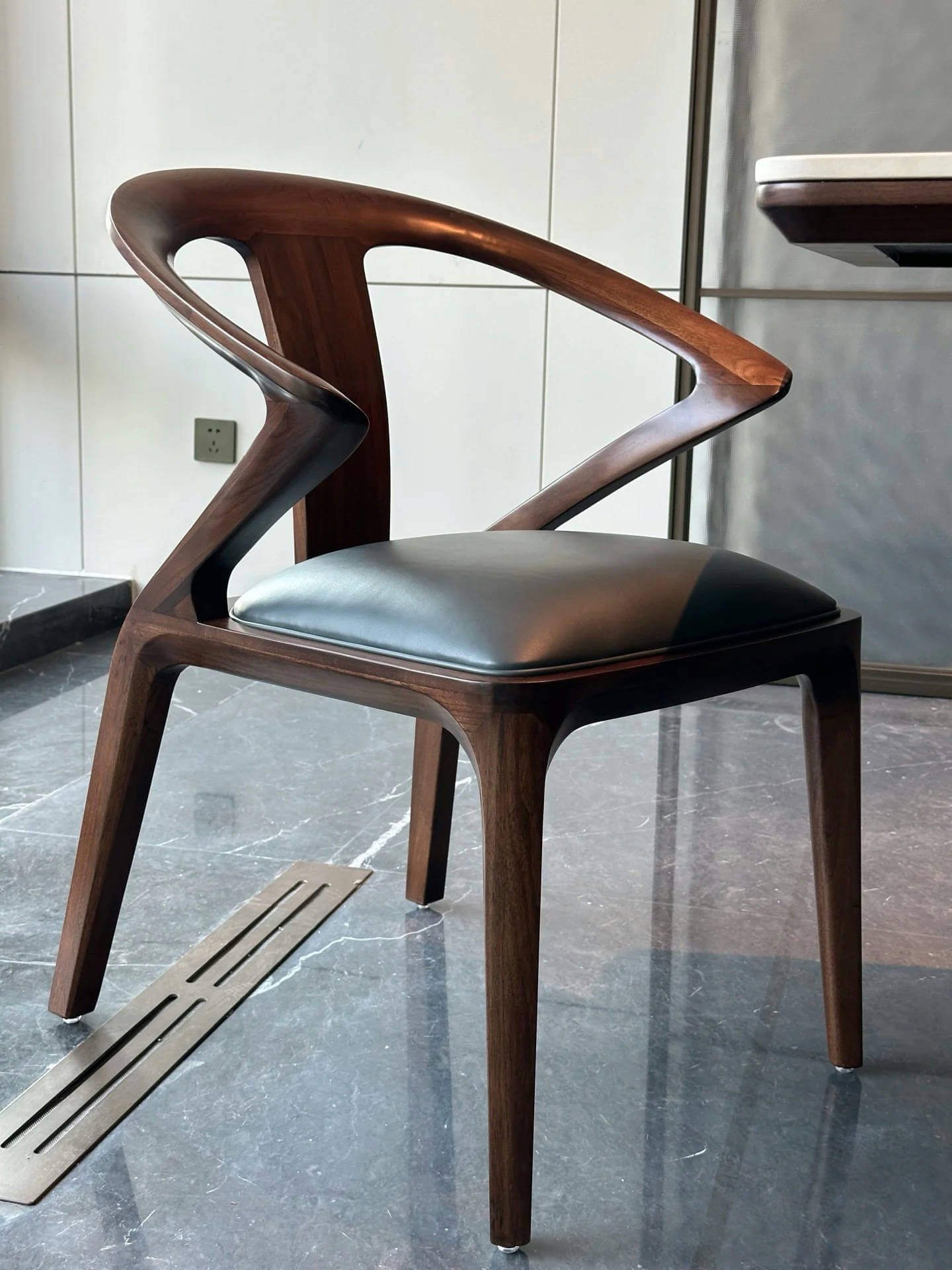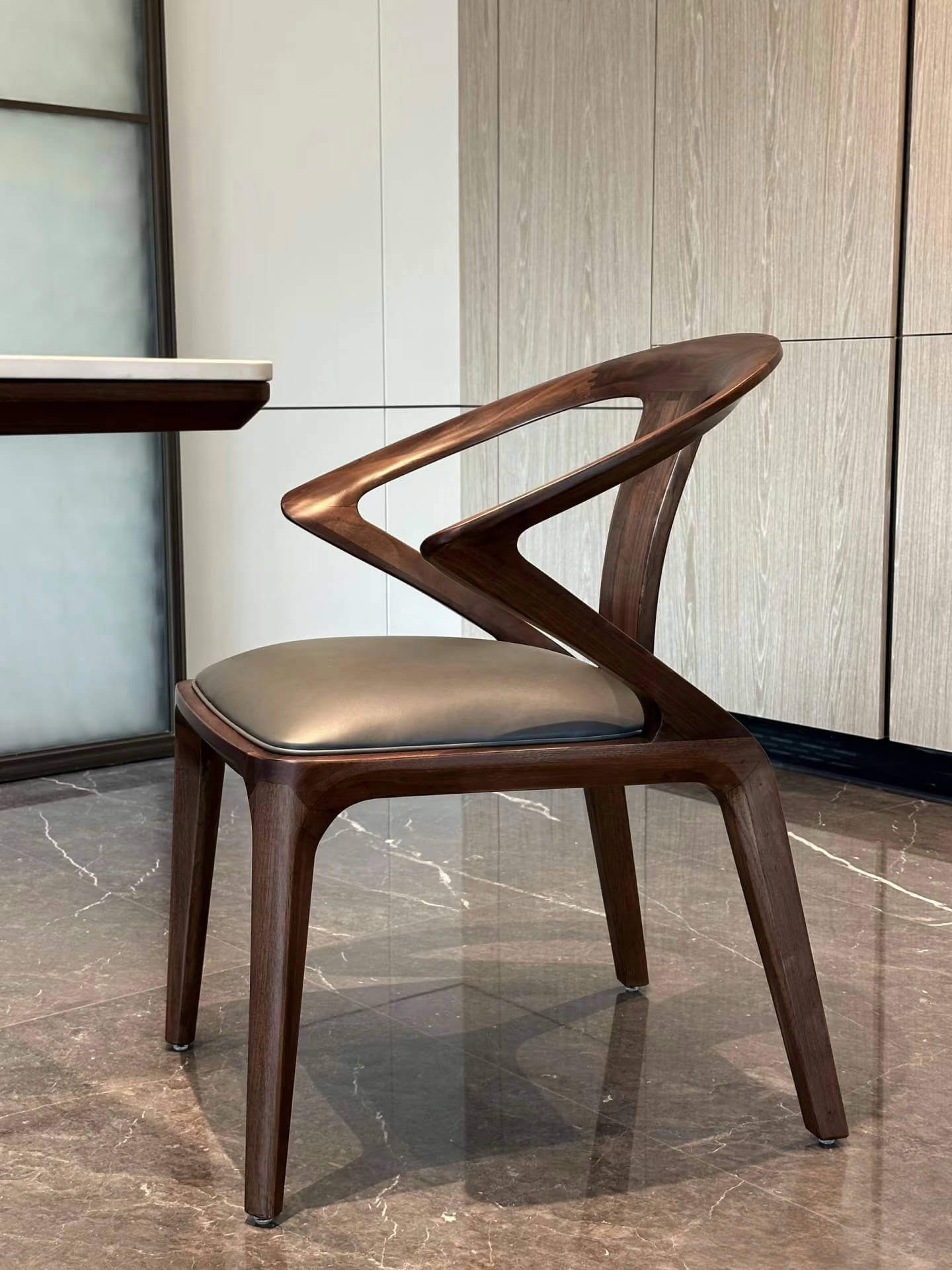 The chair series mirrors the walnut’s elegance. Italian matte – finished wood carves aesthetic lines, as if bringing Da Vinci’s sketches to life. The top – grain leather cushioned seat, with 3 cm – thick high – density foam and a 120° incline, combines with a ventilated backrest featuring a hidden wireless phone charger, merging technology with aesthetics seamlessly.