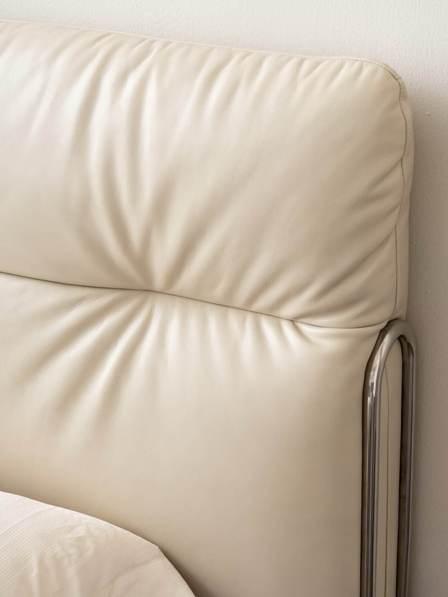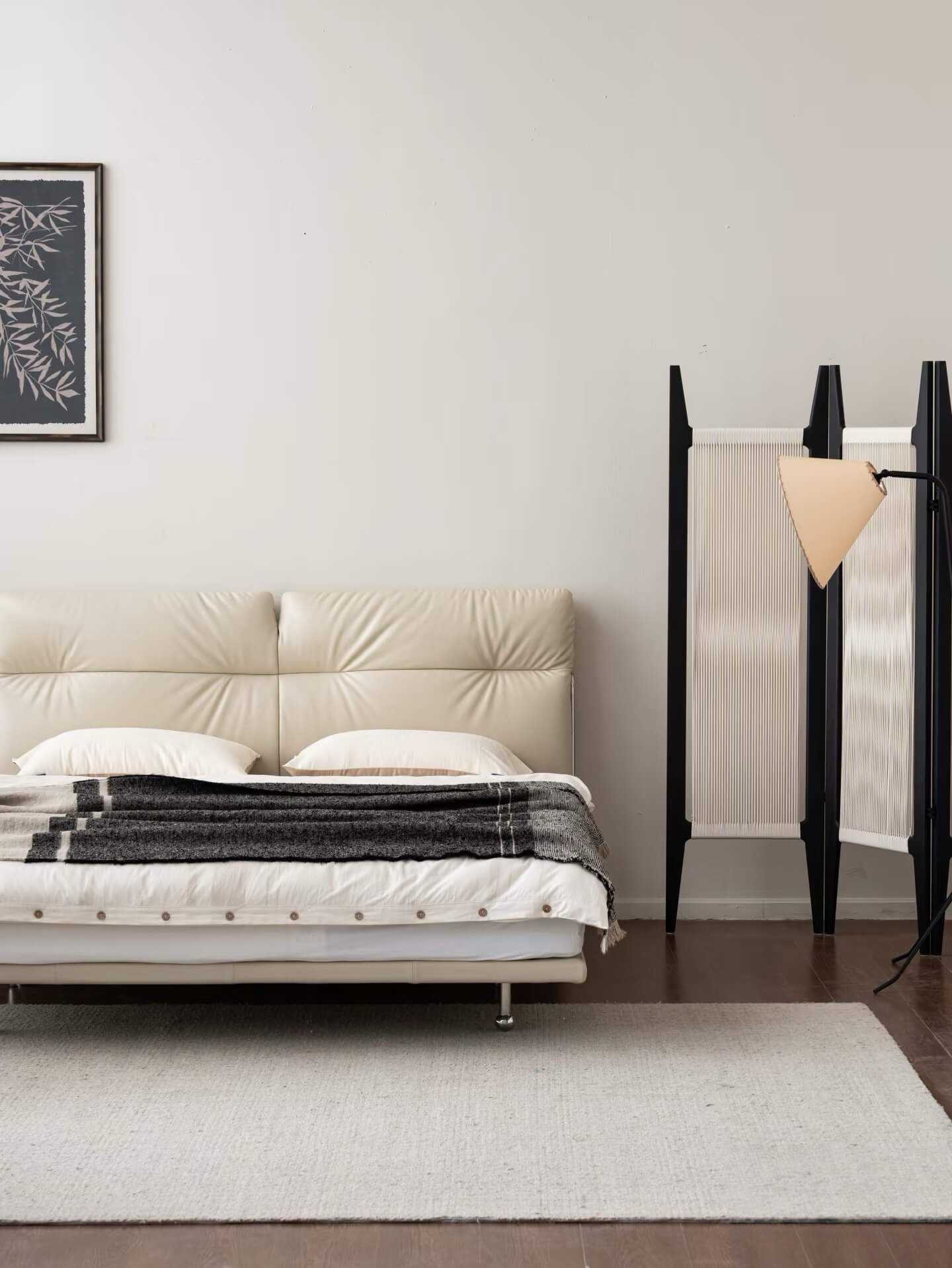 The “Soft Mountain Leather Bed” draws its design inspiration from the interplay of strength and softness. It combines the “bones” of a mountain with the “softness” of clouds, reinterpreting and integrating these elements to give the bed a unique vitality and artistic appeal. When you lean against this bed, it’s as if you’re surrounded by both the firmness of mountains and the gentleness of clouds, offering you an unparalleled experience of comfort.