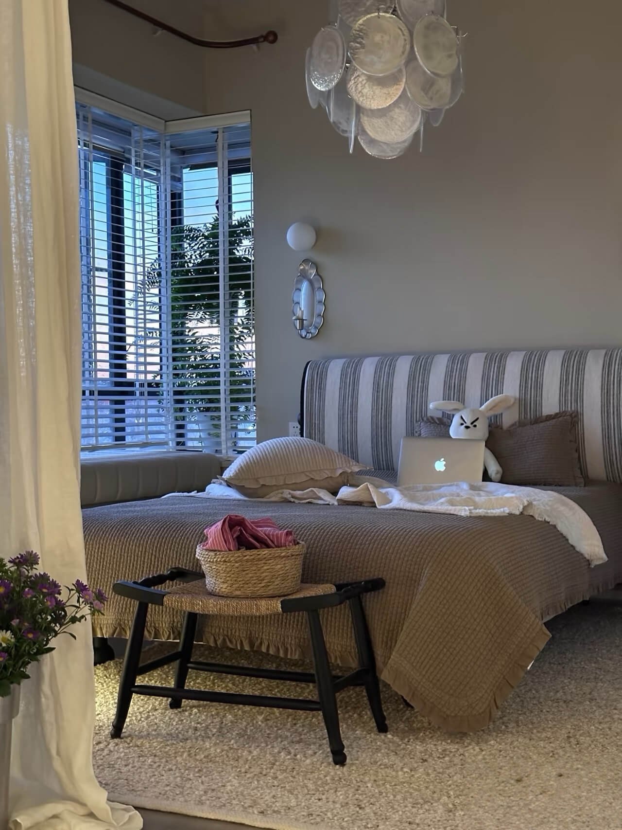 The afternoon sun becomes a special character in this winter home drama. It streams in, warming the room and highlighting the gentle colors and textures within. This is a space designed for slowing down and savoring the simple pleasures of winter. Whether you’re waking up in the morning, taking a nap in the afternoon, or enjoying a drink in the evening, the room adapts to your mood, offering a sense of comfort and freedom that’s hard to find elsewhere.