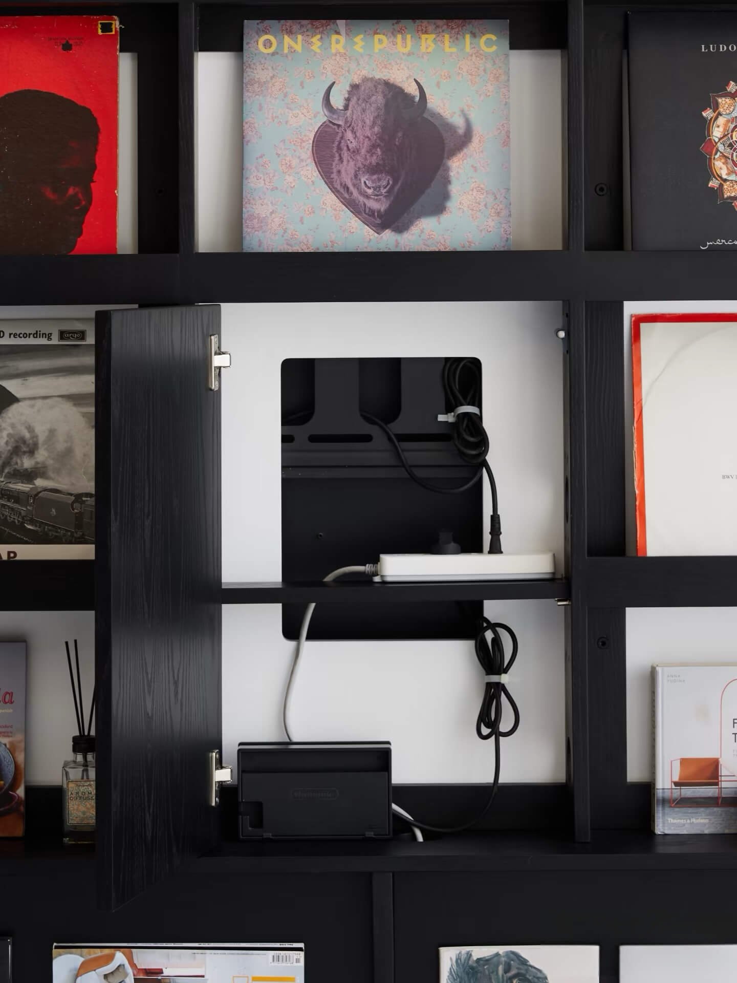 Behind soft-close doors, shelves snap in or out in three seconds: consoles, amps, vinyl, remotes—shut the door and the room exhales. Minimalist cube outside; enthusiast vault inside.