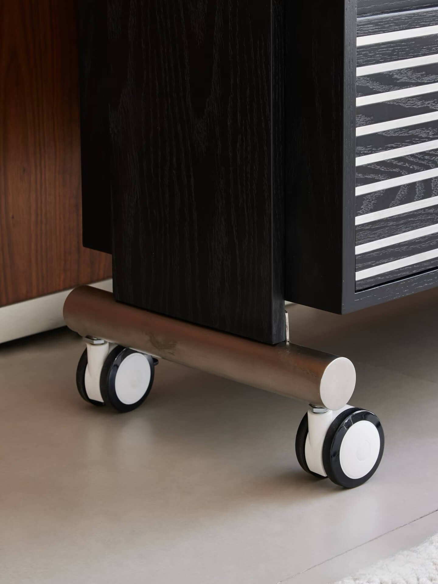 Four 75 mm silent casters, single-touch brakes.