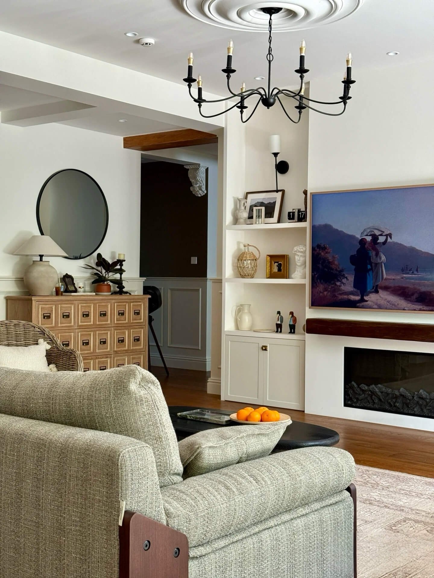 Cream-white is not a colour; it’s a volume knob. It turns the California afternoon sunlight down to mute, letting the low-frequency rhythm of walnut, black iron and linen seep out slowly. We applied three coats of latex paint to “noise-cancel” the walls, then had a 1.2 cm-thick black skirting “cut” a bass line—like the deep groove in an old record, hinting that a 1960s folk track is about to play.