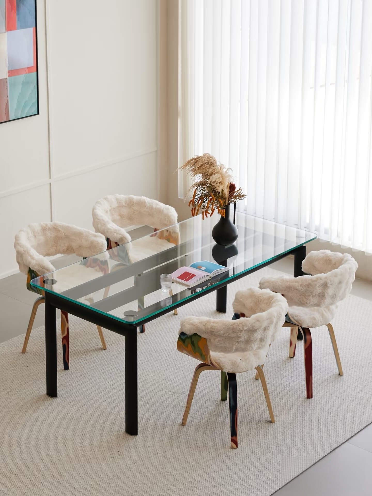 When arranging the Dopamine Dining Chair, you don’t have to worry about size issues. Generally, a dining table height of about 73–75cm and a seat height of about 43–46cm ensures both dining comfort and a harmonious overall appearance. It is also recommended to leave a walking space of more than 60cm between the chair and the wall. This allows for more comfortable movement when getting up during meals, avoiding any sense of confinement.